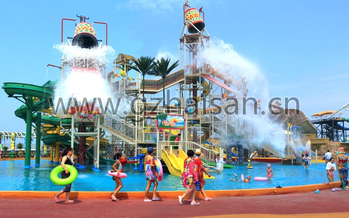 亞特蘭蒂斯海樂園坐落于美麗的濱海之城——蓋州市北海,由營口北海圣和龍翔置業發展有限公司投資新建,占地面積210畝,計劃總投資6億人民幣,海山游樂為該項目提供了規劃設計及水上樂園設備制造、安裝等服務。主要水上樂園設備有:大喇叭滑道、暴風谷滑道、巨蟒滑道、滑毯波浪滑道、螺旋滑道、海浪池、水寨及戲水小品等。